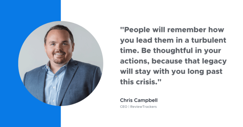 This type of planning, however, involves leaders making the right decisions during these hard times. ReviewTrackers Founder and CEO Chris Campbell shared some insights on how he keeps the company going through periods of crisis – and especially ways to ensure the well-being of employees and customers.