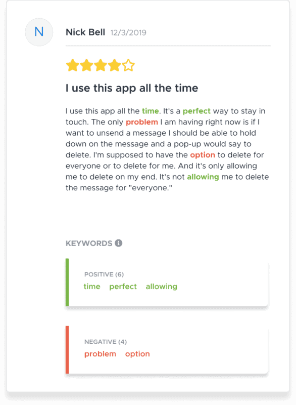 AI-driven keyword categorization measures trends across words and phrases mentioned in feedback and reviews.