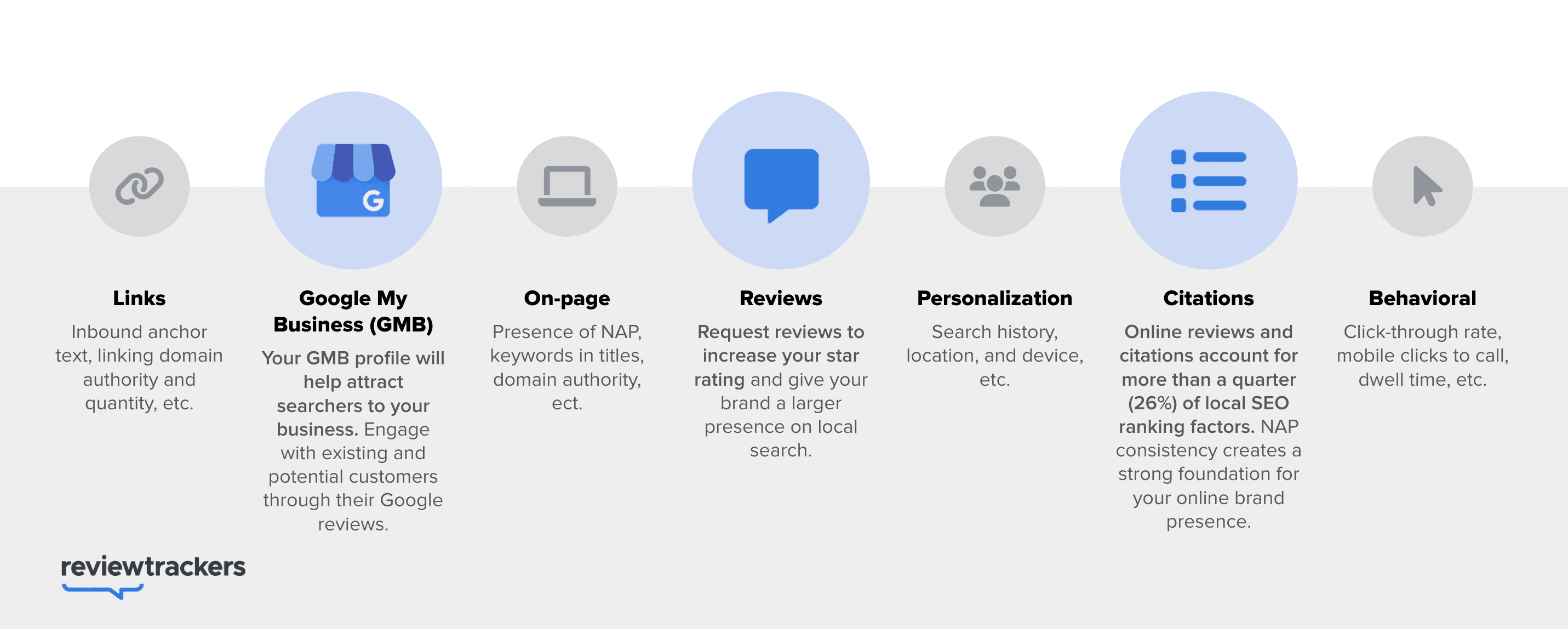 Let’s dive deeper into specific local SEO ranking factors that should shape your tactics and strategy. Factors such as links, on-page signals, personalization, and behavioral signals matter as much as ever. However, this time, let’s take a closer look at three important local SEO factors that have emerged in the last few years.