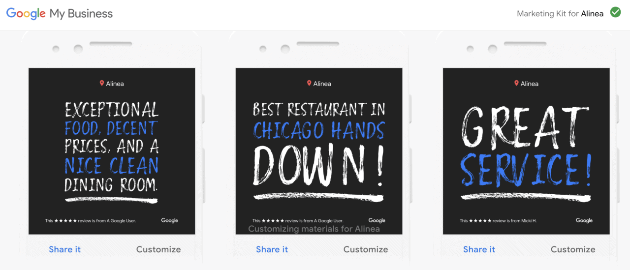 Simply visit the Marketing Kit website (formerly “Small Thanks with Google”) and enter your business name in the search box provided. Here are some examples of social posts and materials you can use to promote your business: