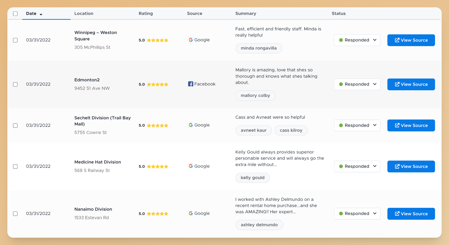 We aim to have accurate listings with high review scores and a high volume of reviews to drive traffic. With ReviewTrackers, our branch managers can update their location information in a couple of clicks and have it synced within 20 minutes. ReviewTrackers also helps us make sure that we’re actioning feedback as quickly as possible.
