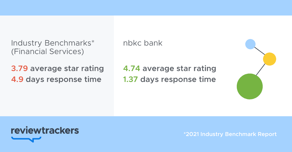 In the rare case that the company receives negative feedback, nbkc bank excels in responding quickly to reviews. Using ReviewTrackers’ Smart Response (and its corresponding Google Chrome extension) — a feature that allows individual users to create and utilize response suggestion templates to reply to customer feedback — the company doesn’t get bogged down by reviews and is even posting responses at a faster rate than ever.