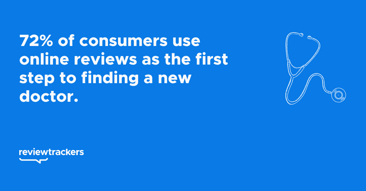 • 72% of consumers use online reviews as the first step to finding a new doctor.
