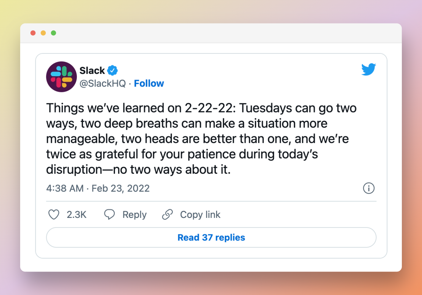 This lasted around 5 hours, during which the company used social media to update users informed about their progress. Slack also posted updates on its status page in order to transparently detail its efforts to address the problem.