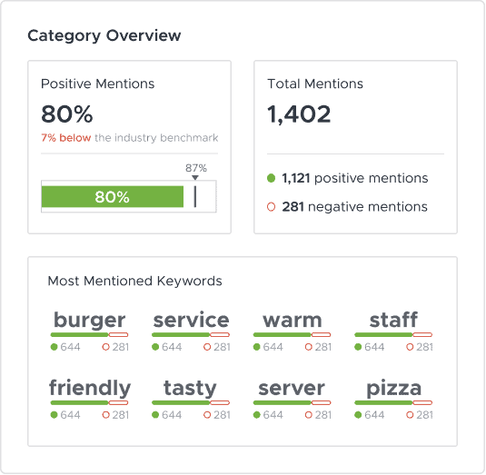 AI-driven keyword categorization measures trends across words and phrases mentioned in feedback and reviews.