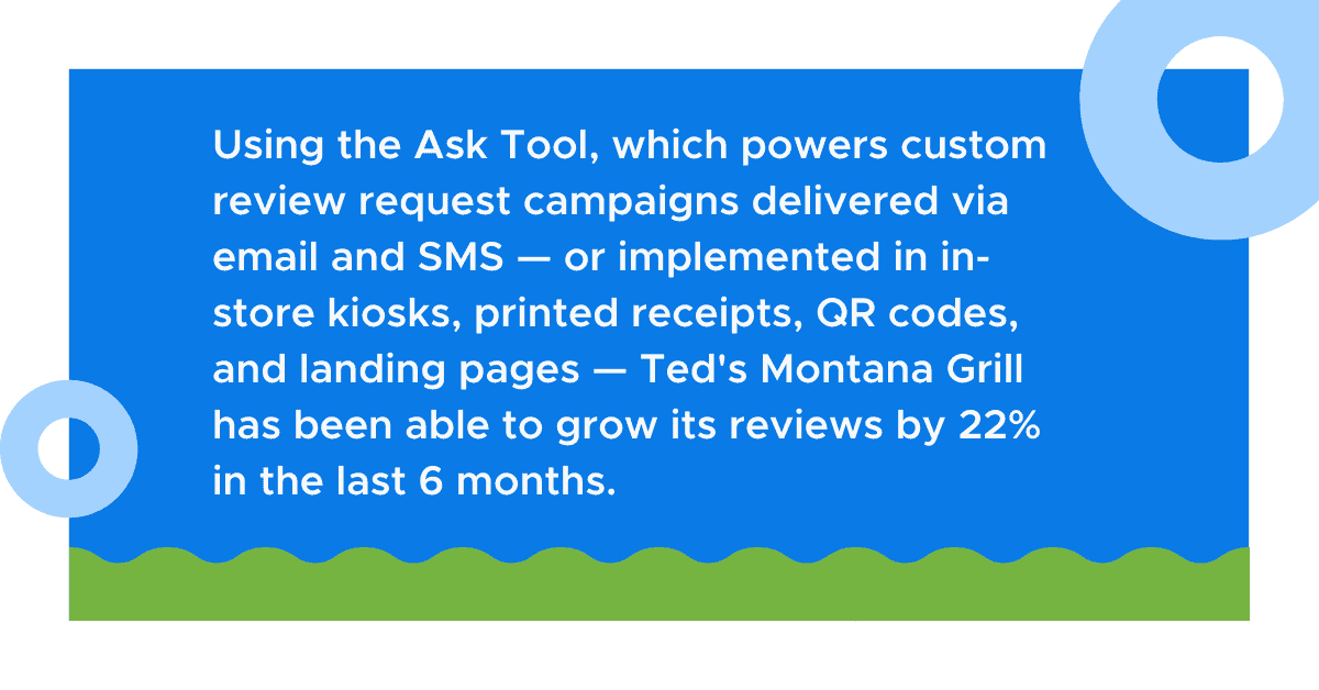 ReviewTrackers is Ted’s Montana Grill’s customer acquisition tool of choice. By adopting technology that simplifies the management of online reviews, customer feedback, and brand reputation, the company has positioned itself to recover and be more successful in the long run.