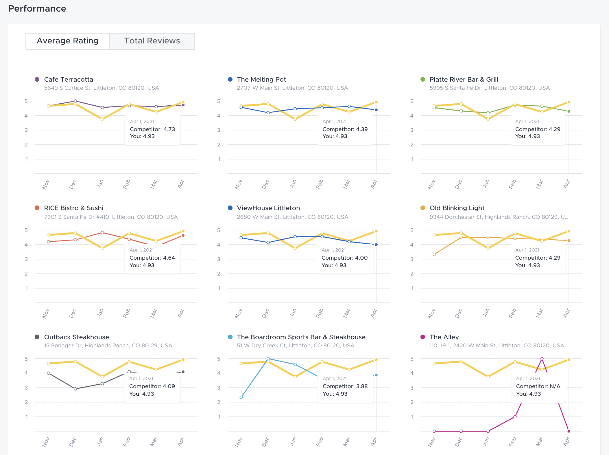 Shearer says, “To ensure we have a competitive advantage in each individual trade area, we provide each restaurant their competitors’ online reputation scores.”
