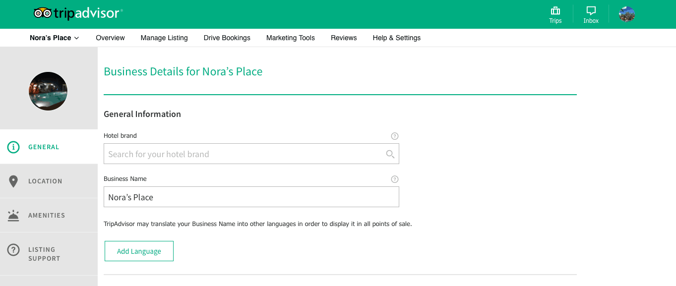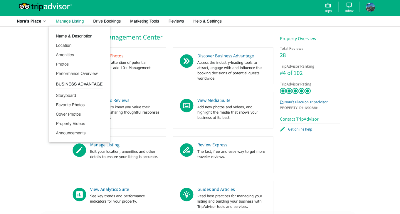 This will take you to your Management Center homepage, where you can edit and update your business name on Tripadvisor. To do this: