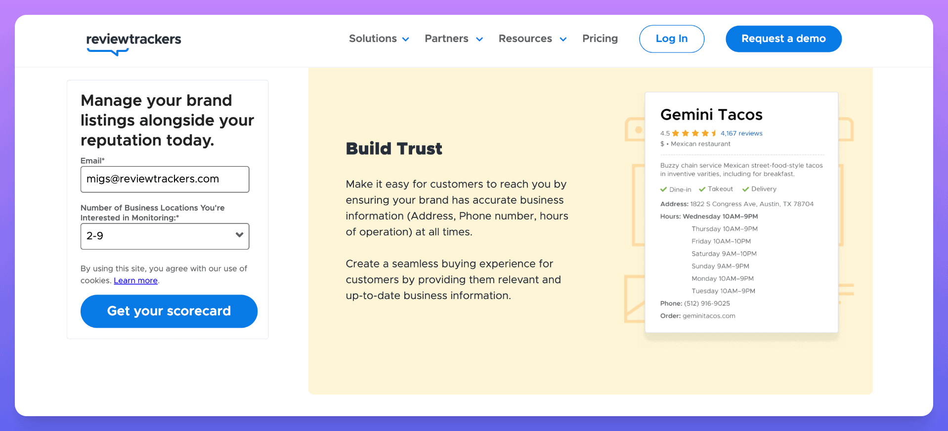 ReviewTrackers is known for its online reviews and reputation management software, which offers several local SEO software features to help businesses grow their brand presence and search performance.