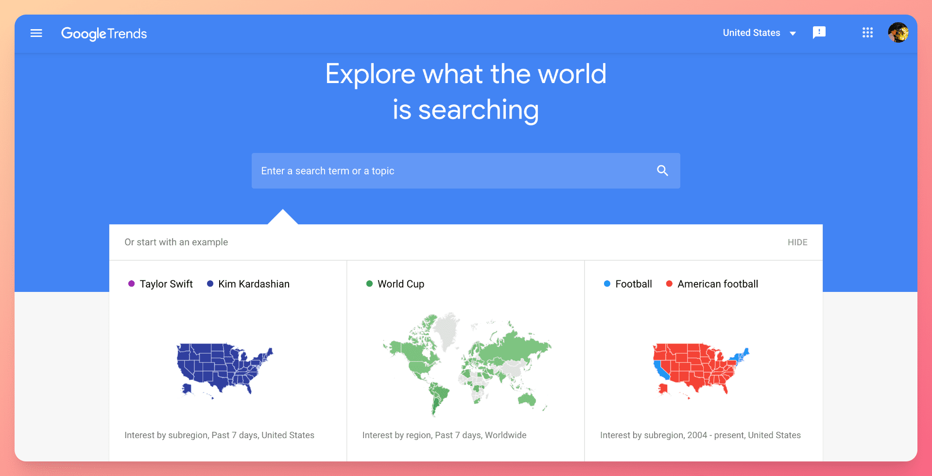 With Google Trends, you can key in on local markets where your business has the most opportunity and tailor your marketing content to specific regions. Having keyword popularity information for specific geographical locations is also extremely valuable for optimizing your content marketing and PPC efforts.
