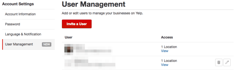 1. Go to the “Account Settings” tab in the Yelp for Business Owners site and click on the “User Management” section on the left-hand menu.