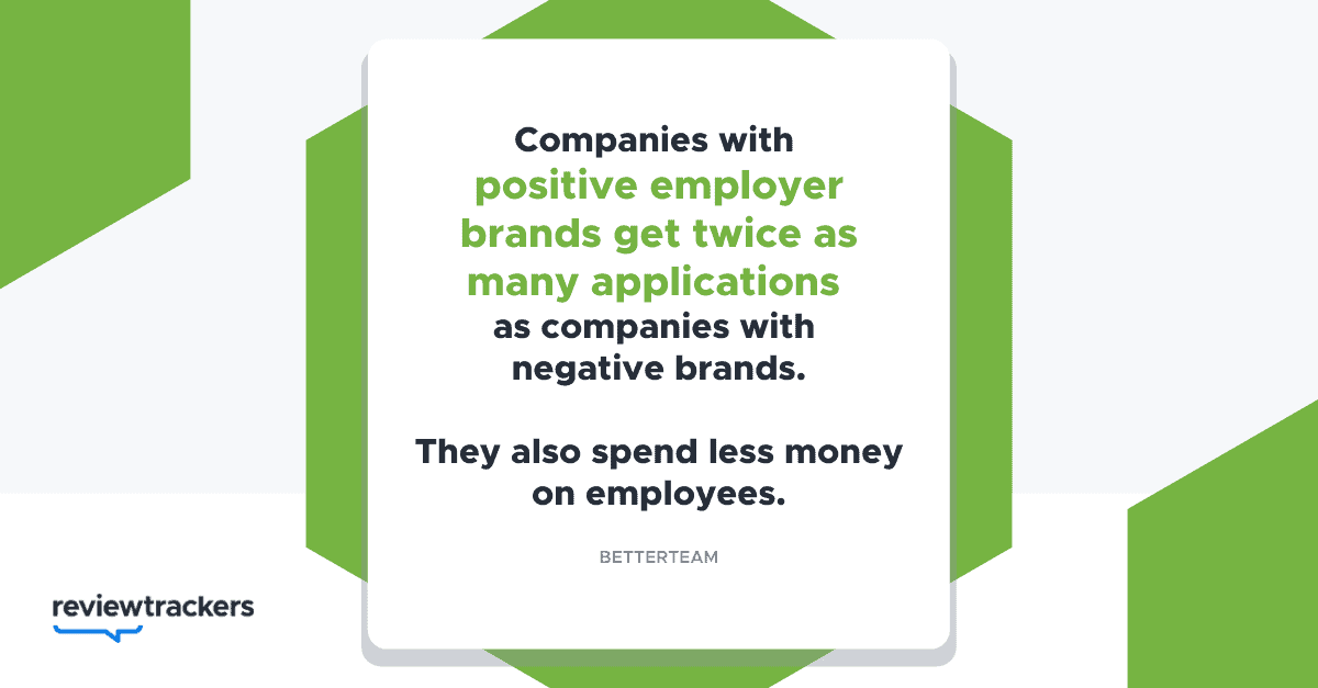 - Companies with positive employer brands get twice as many applications as companies with negative brands. They also spend less money on employees.